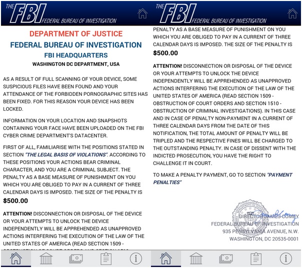 หลังจากนั้นไม่นาน ผู้ใช้จะได้รับแจ้งให้ชำระเงินค่าไถ่ $ US500 ที่ถูกกล่าวหาว่าผู้ใช้ดูและเก็บสื่อลามกที่ต้องห้าม