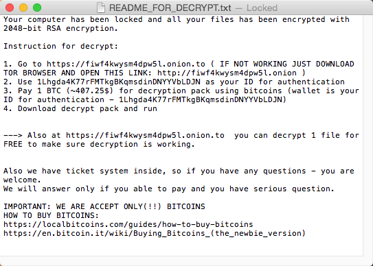 โปรแกรมเรียกค่าไถ่บน Apple OS X ปรากฎตัวเมื่อวันที 4 มีนาคม 2016 กับ KeRanger