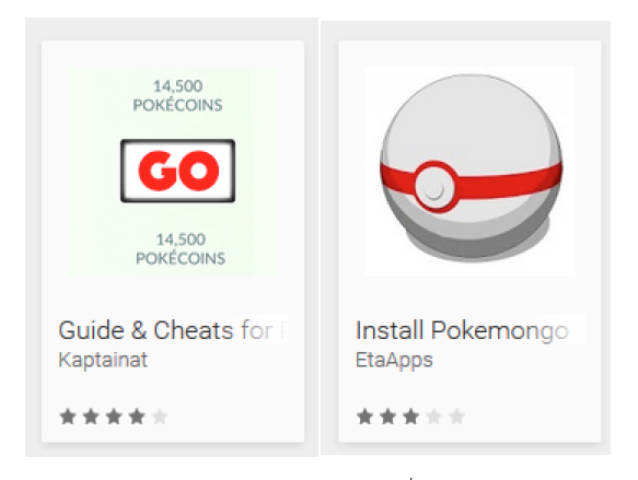Pokemon GO Ultimate ไม่ใช่แอปพลิเคชันเดียวที่ ESET พบบน Google Play นักวิจัยของ ESET ยังคงพบแอปพลิเคชันที่ชื่อว่า “Guide & Cheats for Pokemon Go” แลพ “Install Pokemongo” บน Google Play และผลิตภัณฑ์ Mobile Security ของ ESET ตรวจจับได้ในชื่อ Android/FakeApp