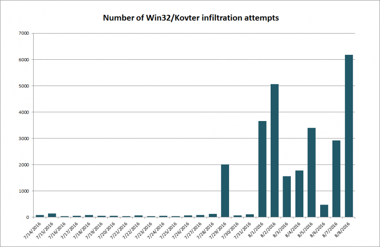 จำนวนรูปแบบเกิดจากคำสั่งของผู้ควบคุม Kovter จะเฝ้าดูการใช้ CPU และหน่วยความจำ เพื่อไม่ให้โทรจันถูกตรวจจับได้หากทำงานมากเกินไป