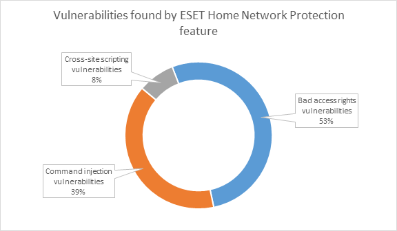 จากผลการวิเคราะห์มีประมาณ 7% ของเราเตอร์ทั้งหมดมีช่องโหว่ร้ายแรง โดยช่องโหว่ของซอฟต์แวร์กว่า 50% ที่ ESET พบระหว่างการทดสอบ เป็นช่องโหว่ที่เปิดโอกาสให้แฮกเกอร์เข้าควบคุมอุปกรณ์ได้ หรือ Bad access rights vulnerabilities