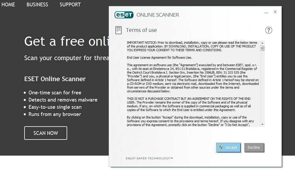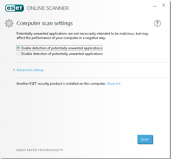 1. ดาวน์โหลดและเปิดโปรแกรม ESET Online Scanner