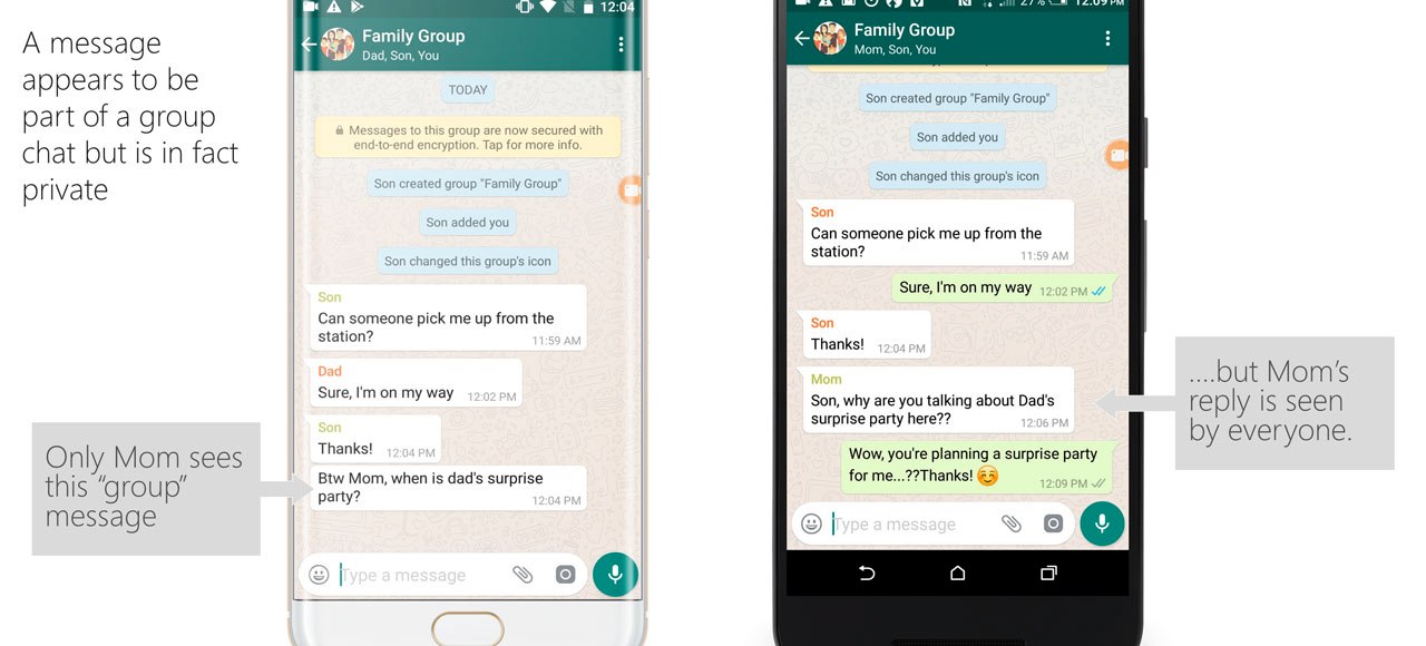 แต่ตอนนี้สถานการณ์กลับแย่ลงไปกว่าเดิมเมื่อ มีคนพบว่าวิธีการส่งต่อข้อความและยังแก้ไขข้อความได้อีกด้วย ข้อความนั้นจะปรากฏว่ามาจากผู้ใช้อื่นนอกเหนือจากกลุ่ม และทุกจะได้รับเป็นข้อความส่วนตัว