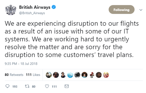 Source: https://www.welivesecurity.com/2018/07/19/british-airways-cancelled-flights-heathrow-system-issue/