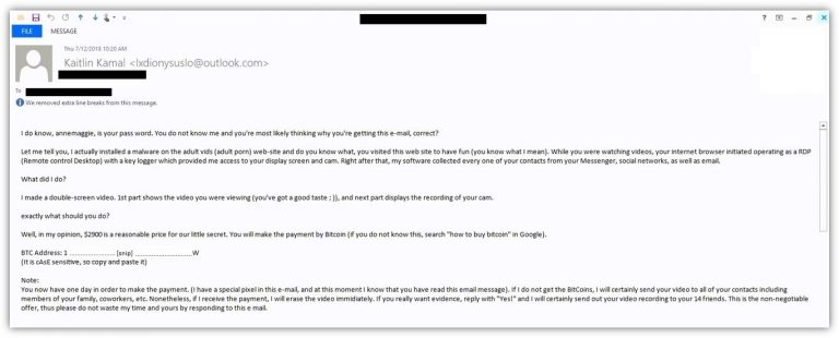 ล่าสุดนักวิจัยของ ESET พบกลโกงของ “Scareware” หรือการใช้อีเมลเพื่อข่มขู่ โดยกล่าวหาว่าคุณเข้าชมเว็บไซต์ผิดกฎหมาย อย่างเว็บไซต์ที่มีเนื้อหาสำหรับผู้ใหญ่ เพื่อเรียกร้องสิ่งตอบแทนจากคุณ แต่ในกรณีล่าสุดแฮกเกอร์ ใช้รหัสผ่านของผู้ใช้เป็นเครื่องมือข่มขู่ผู้ใช้