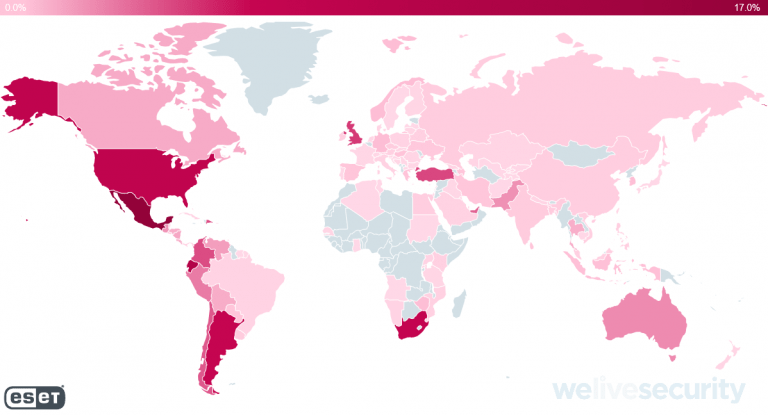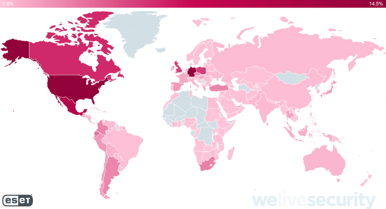 หากวิเคราะห์ถึงพื้นที่ในการแพร่ระบาดภาพต่อมาจะแสดงให้เราเห็นว่าแผนการของ Emotet เกิดขึ้นที่ อเมริกา อังกฤษ ตุรกี และแอฟริกาใต้