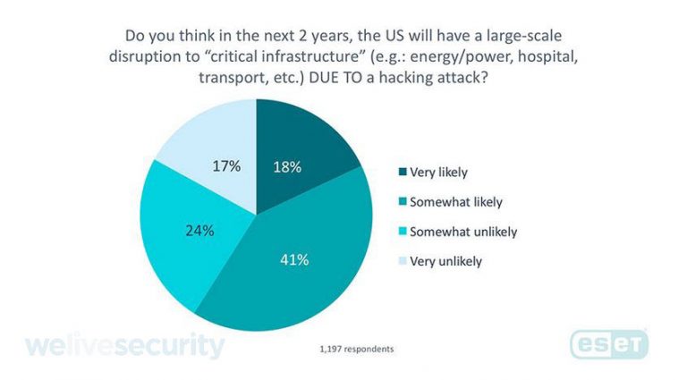 ภาพรวมก็คือ 84% ของผู้ตอบแบบสอบถามเชื่อว่าในอีกสองปีข้างหน้าในสหรัฐฯจะต้องเผชิญกับการโจมตีโครงสร้างพื้นฐานที่ใหญ่ขึ้น