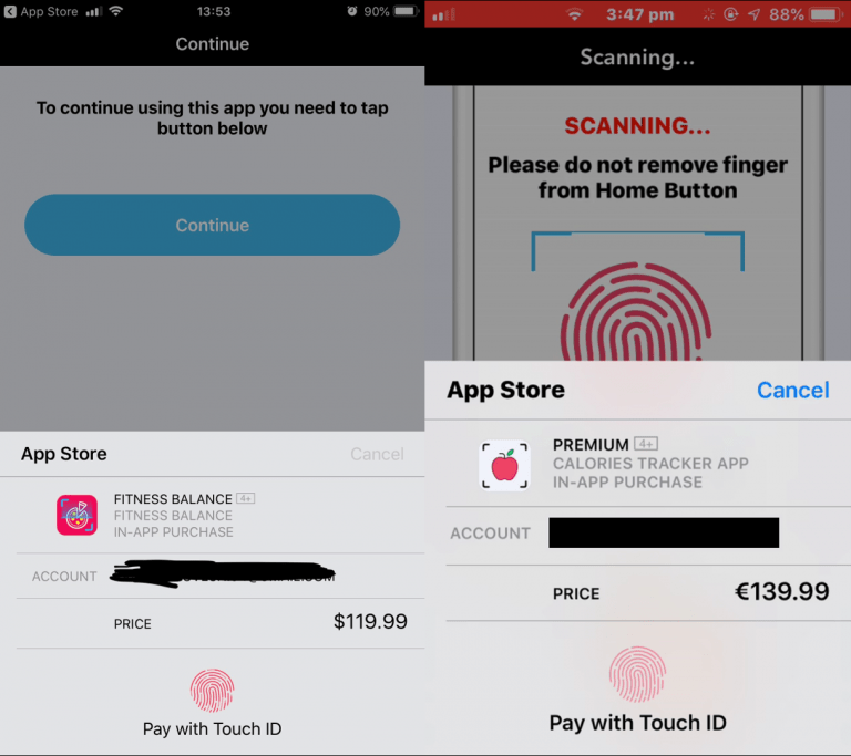หลายแอปพลิเคชั่นอันตรายปลอมตัวเป็นแอปฯติดตามฟิตเนสและใช้ประโยชน์จาก Touch ID ของ Apple เพื่อขโมยเงินจากผู้ใช้ iOS ซึ่ง Touch ID เป็นฟีเจอร์ที่ใช้จ่ายเงินโดยใช้ลายนิ้วมือ เหมือนกับที่แอปพลิเคชั่นฟิตเนสใช้ทั่วไป