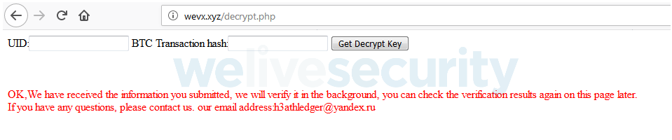 โปรแกรมเรียกค่าไถ่ตัวนี้เราสามารถค้นหาโค้ดถอดรหัสได้ผ่านเว็บไซต์ในภาพด้านล่าง