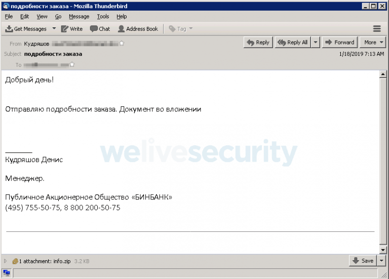 ในอีเมลแนบไฟล์ชื่อว่า “Информация.js“ หรือในภาษาอังกฤษว่า “Information” เมื่อแตกไฟล์ออกมาและเริ่มทำงานไฟล์ Javascript จะดาวน์โหลด loader อันตรายที่ ESET ตรวจจับได้ในชื่อ Win32/Injector เพื่อเริ่มทำงานขั้นตอนสุดท้ายเป็น Shade Ransomware