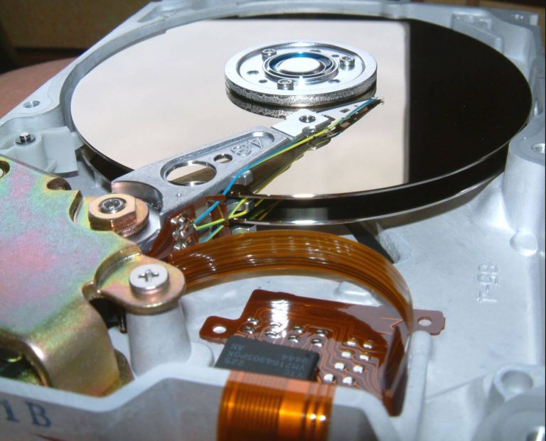 ฮาร์ดดิสก์ทำงานด้วยการหมุนเข็มบนแผ่นแก้วหรืออลูมิเนียมด้วยความเร็ว 15,000 รอบต่อนาที (RPM) หรือประมาณ 150 ไมล์ต่อชั่วโมง (240 กม.ต่อชั่วโมง) ด้วยความห่างเพียง 3 นาโนเมตร เล็กกว่าเส้นผม 25,000 เท่า