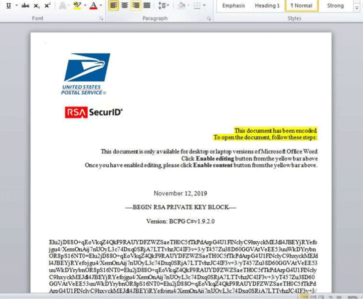 นักวิจัยความปลอดภัยทำการรวบรวมข้อมูลจากวันที่ 16 ตุลาคม ถึง 12 พฤศจิกายน พบว่าแฮกเกอร์ใช้เอกสาร Microsoft Word ที่ใช้เพื่อแทรกซึมเข้าอุปกรณ์