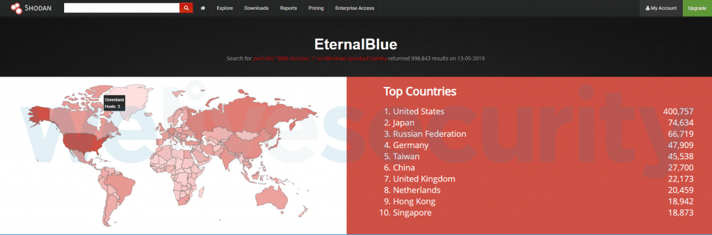 ข้อมูลจากเว็บไซต์ Shodan บอกว่าในปัจจุบันยังคงมีอุปกรณ์นับล้านยังคงใช้โปรโตคอล SMBv1 อยู่ และเปิดเผยพอร์ตบนอินเตอร์เน็ต อุปกรณ์ส่วนมากอยู่ในสหรัฐฯมากที่สุด ตามมาด้วยญี่ปุ่น และรัสเซีย