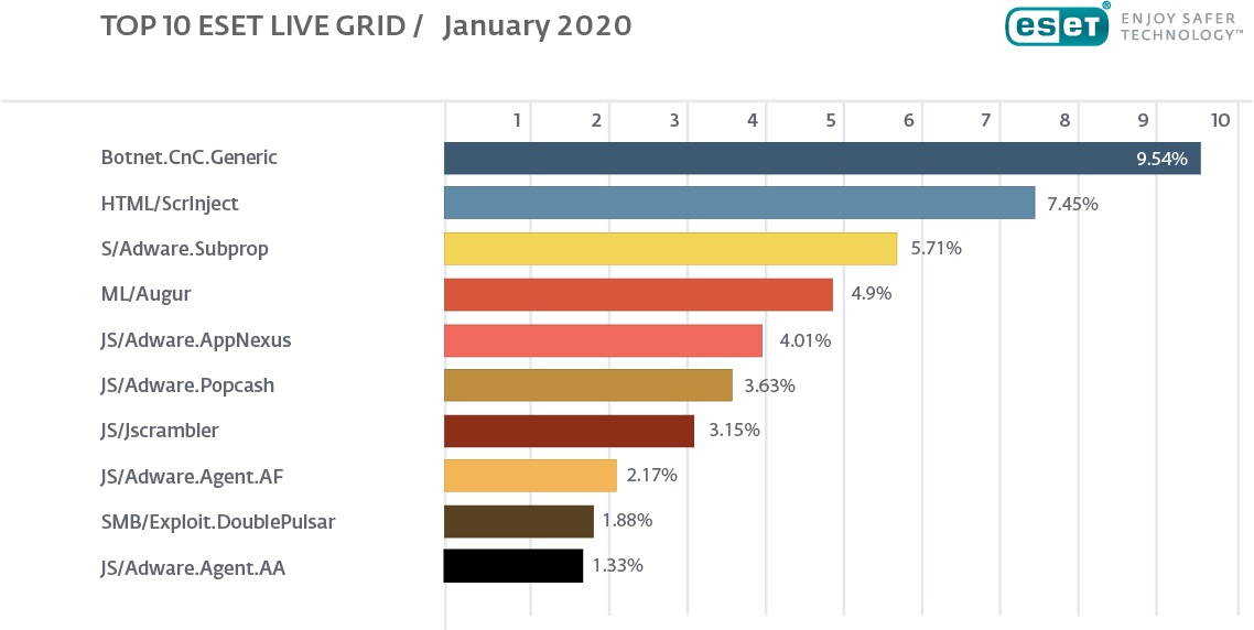 การตรวจจับ Botnet.CnC เกี่ยวข้องกับโมดูลป้องกันบอทเน็ตของ ESET แสดงถึงการตรวจจับทราฟฟิคอันตรายที่อาจเกี่ยวข้องกับภัยคุกคามต่างๆ