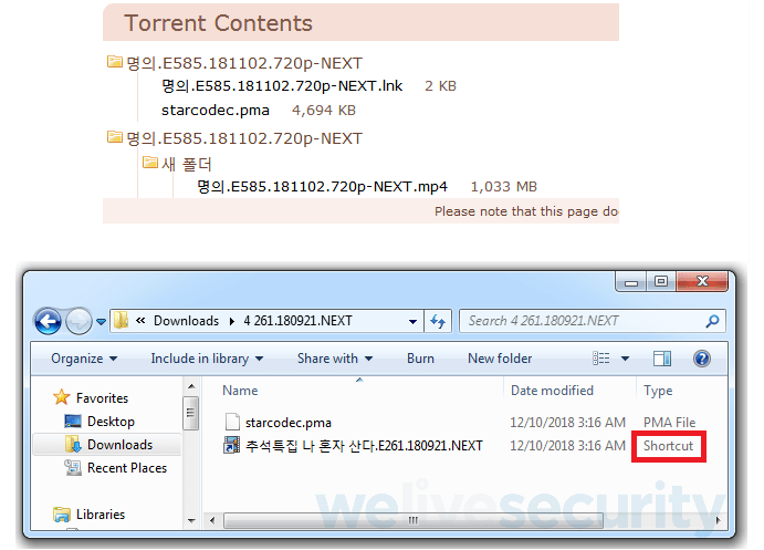 เมื่อผู้ใช้โหลดไฟล์ที่คิดว่าเป็นซีรีย์และรายการทีวีเกาหลี หรือเกมส์มาจากเว็บไซต์บิทเกาหลีและจีน แต่แท้ที่จริงแล้วเป็นไฟล์อันตรายนามสกุล LNK (ชื่อไฟล์เป็นชื่อวิดีโอและไอคอนเป็นวิดีโอ) และไฟล์ PMA (ดูเหมือนไฟล์ codec)