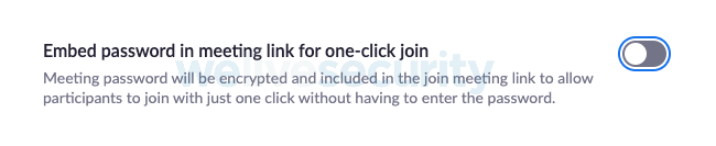 นี่ไม่ใช่รหัสผ่านที่ผู้เข้าร่วมต้องกรอก แต่เราแนะนำให้เปิดไว้ และจะมีประสิทธิภาพก็ต่อเมื่อ เรายกเลิกการฝังรหัสผ่านตามภาพด้านล่าง