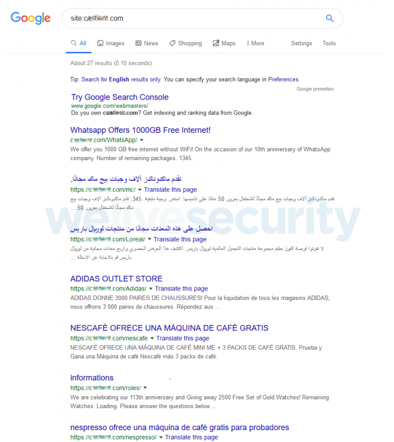 ส่วนโดเมนที่ใช้ก็มีแผนการอื่นๆ ใช้แบรนด์ชื่อดังต่างๆอย่าง Adidas, Nestlé และ Rolex ซึ่งเมื่อเราค้นหาใน Google ก็พบข้อเสนอต่างๆ