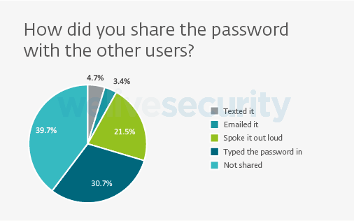 ต่อมาคำถามคือพวกเขาส่งต่อรหัสบัญชีอย่างไร ที่น่าตกใจก็คือมีถึง 1 ใน 5 คนที่บอกปากเปล่า และมีถึง 7.5% ส่งอีเมลหรือส่งข้อความ