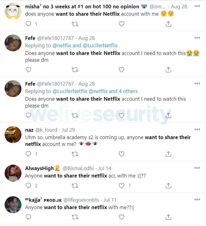 Source: https://www.welivesecurity.com/2020/11/11/why-you-should-keep-netflix-password-yourself/