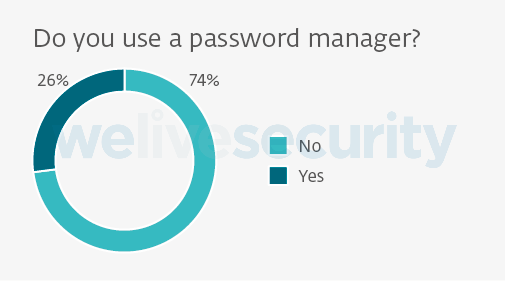 แต่ผลสำรวจกลับพบว่ามีผู้ใช้เพียง 26% เท่านั้นที่ใช้ Password Manager ซึ่งคนอีก 3 ใน 4 ต้องจำรหัสผ่านเอง หรือใช้รหัสผ่านซ้ำ หรือแม้กระทั่งใช้รหัสผ่านที่มีแต่ตัวเลข