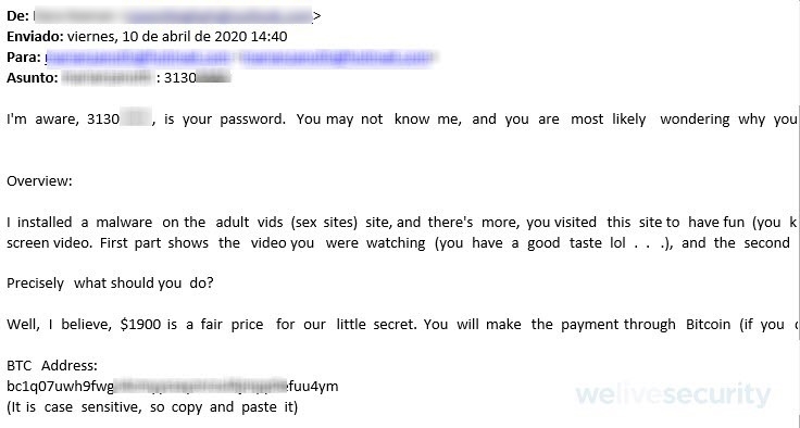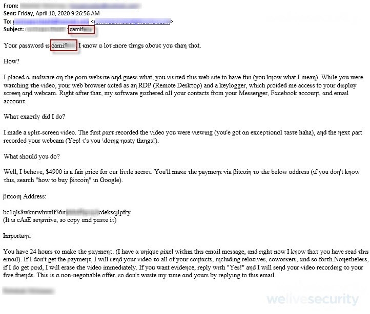 Source: https://www.welivesecurity.com/2020/04/30/new-sextortion-scam-claims-know-your-password/