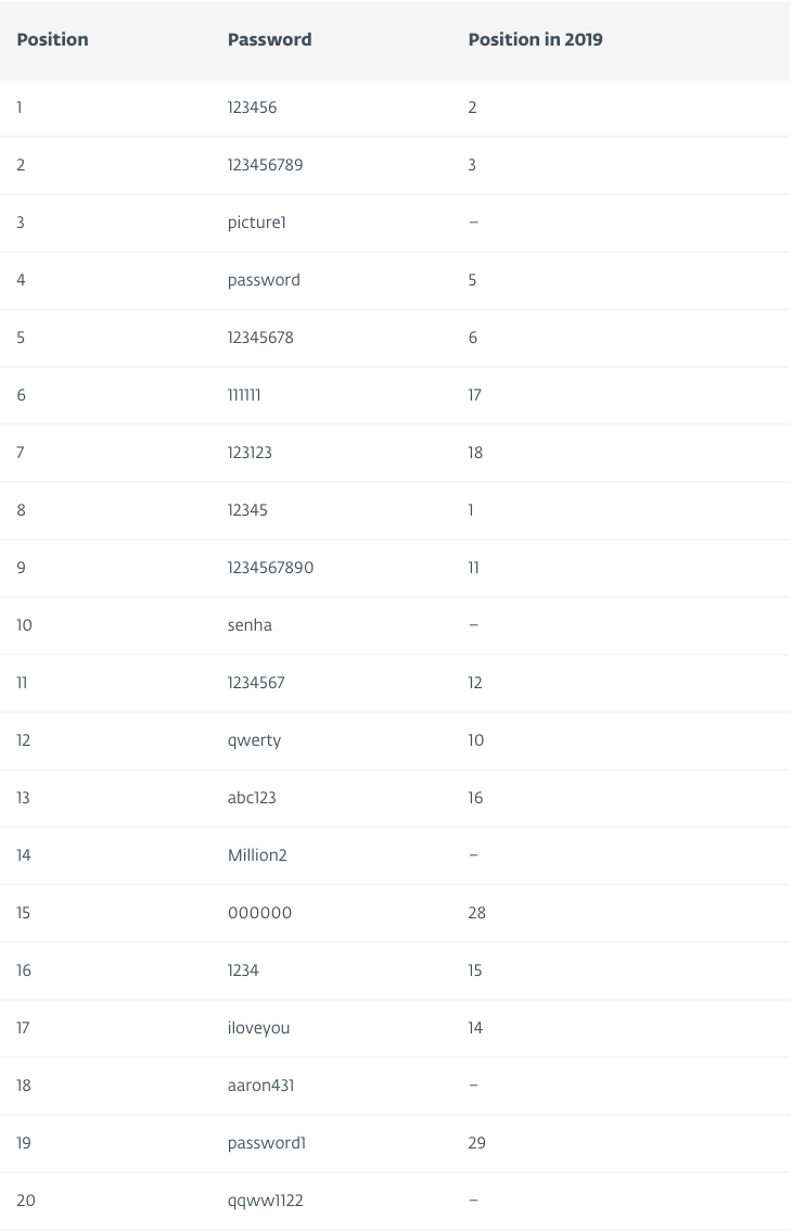 Source: https://www.welivesecurity.com/2020/11/19/worst-passwords-2020-is-it-time-change-yours/