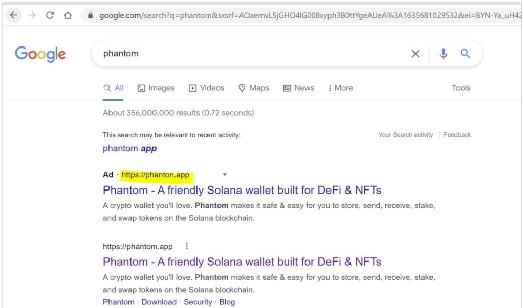 Source: https://www.bleepingcomputer.com/news/security/crypto-investors-lose-500-000-to-google-ads-pushing-fake-wallets/