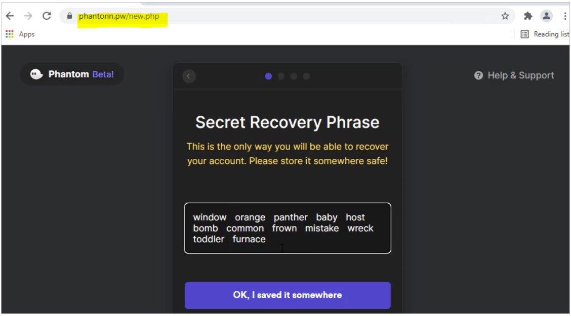เมื่อการติดตั้งสำเร็จ ผู้ใช้จะถูกพาไปยังหน้า Phantom จริง สิ่งที่เกิดขึ้นอยู่ตอนนี้คือ ระหว่างการกู้คืน Secret Recovery Phrase ที่ผ่านมาเหยื่อได้ล็อคอินเข้าไปในบัญชีของแฮกเกอร์ แต่คิดว่ากำลังใช้บัญชีของตัวเองอยู่ และที่เลวร้ายกว่านั้นก็คือแฮกเกอร์สามารถใช้งานกระเป๋าเงินของเหยื่อได้