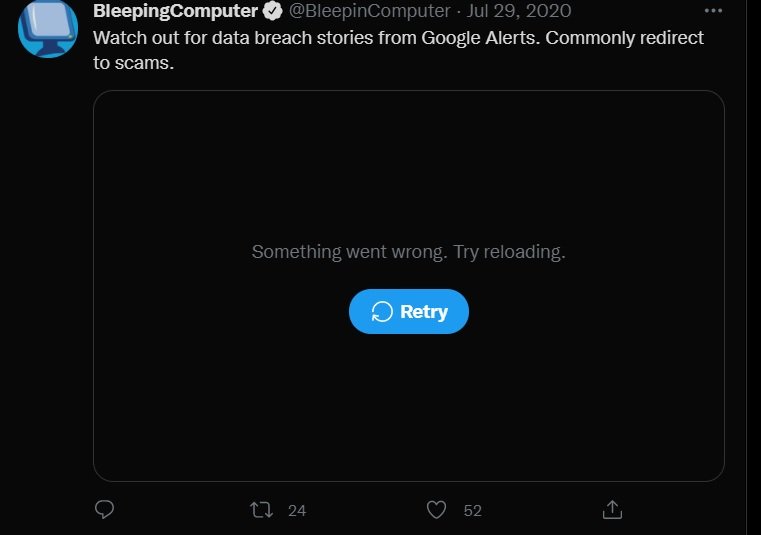 หลังจากผู้ใช้อัพเดตเวอร์ชันเบราว์เซอร์ Google Chrome เป็นเวอร์ชัน 96 พบปัญหาการแจ้งเตือนบน Twitter ทำให้เว็บไซต์ขึ้นเตือนว่า “Something went wrong, Try reloading”