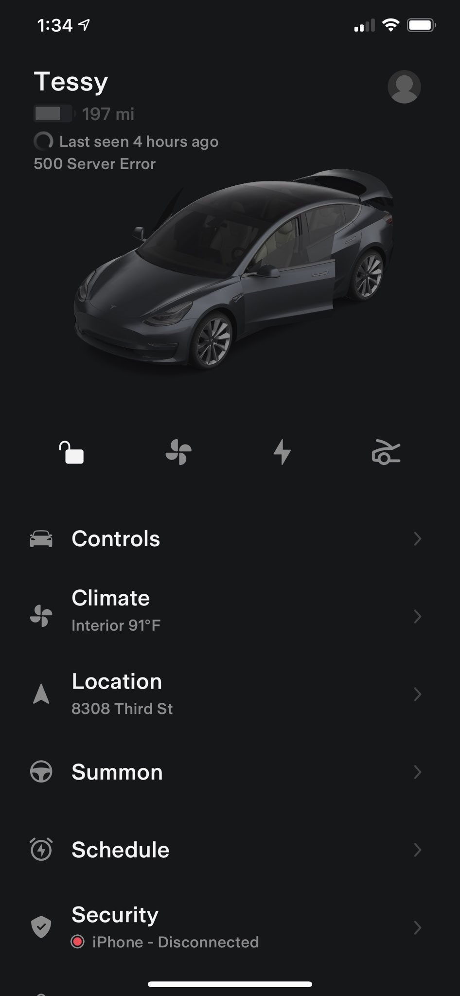 เวลาประมาณ 4 โมงเย็นวันที่ 19 พฤศจิกายน 2021 เจ้าของรถ Tesla รายงานกับ Tesla ผ่านโซเชี่ยลมีเดียว่า เมื่อพวกเขาใช้แอปพลิเคชันเพื่อออกคำสั่งกับรถ พวกเขาได้รับการตอบกลับ “500 server error” เหตุการณ์นี้ทำให้เจ้าของรถใช้แอปพลิเคชันไม่ได้และบอกตำแหน่งรถผิด