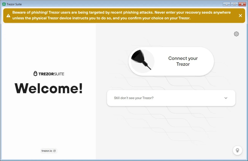 แอปพลิเคชัน Trezor Suite เป็นซอฟต์แวร์ Open-Source ดังนั้นจึงไม่ยากเลยที่แฮกเกอร์จะดาวน์โหลดซอฟต์แวร์ไปเพื่อสร้างแอปพลิเคชันเลียนแบบที่หน้าตาใกล้เคียงกับของจริง