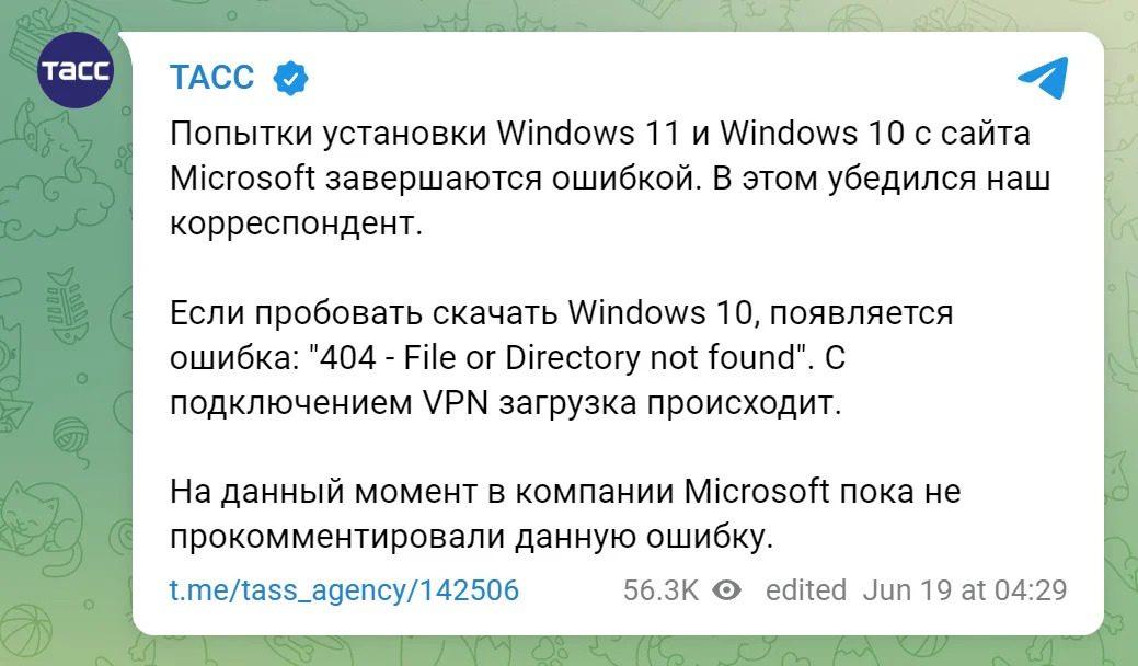 Source: https://www.bleepingcomputer.com/news/microsoft/windows-10-and-windows-11-downloads-blocked-in-russia/