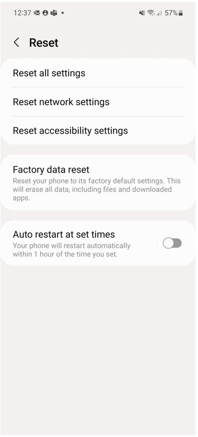 การรีสตาร์ทเครื่องอาจช่วยให้การทำงานของสมาร์ทโฟนดีขึ้น หากเป็นไปได้ตั้งเวลารีสตาร์ททุกวันหรือสัปดาห์ละครั้งเป็นอย่างน้อย แต่ถ้าหากทั้งหมดที่กล่าวมาไม่มีอันไหนที่สามารถแก้ไขปัญหาได้ การรีเซ็ต (Factory data reset) อาจเป็นทางออกสุดท้าย