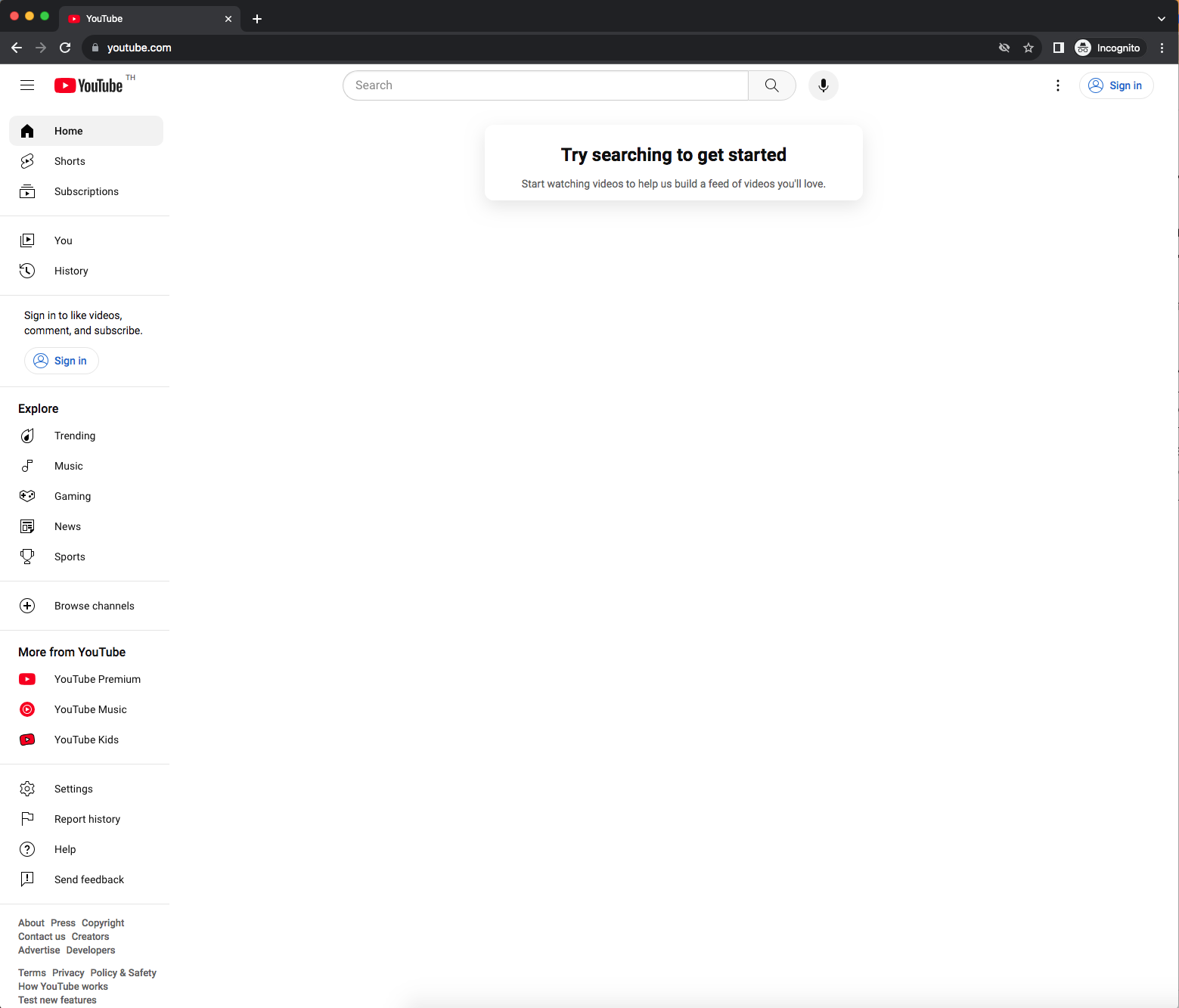 ในตอนนี้ผู้ใช้จะเห็นเพียงข้อความ “Get Started” และ “Start watching videos to help us build a feed of videos you’ll love” หรือให้ผู้ใช้ค้นหาและรับชมวิดีโอ เพื่อที่ Google จะได้แนะนำ แต่ถ้าผู้ใช้เปิดโหมด Incognito จะไม่มีวิดีโอแนะนำให้เห็นเลย