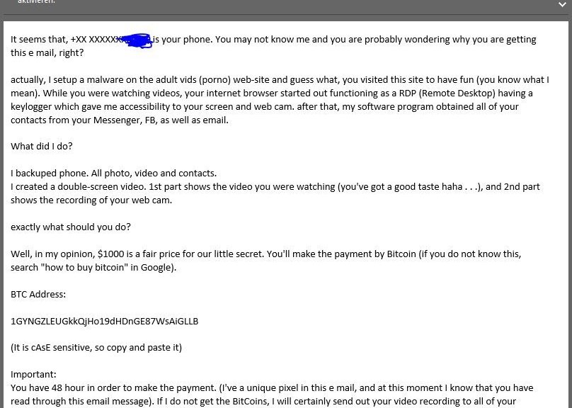 อีเมลแจ้งว่าสมาร์ทโฟนถูกแฮกโดยฝีมือของแฮกเกอร์ รูปแบบใหม่ของการทำมาหากินของมิจฉาชีพออนไลน์